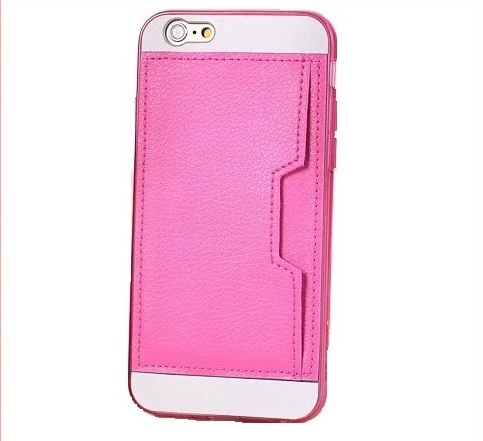 > 【H0008】iPhone6用レザーケース ピンク 背面にカード入れ付き