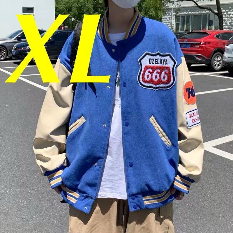 > ブルゾン ジャケット アウター スタジャン スタジアムジャンパー トレンド 好評中 ストリート オルチャン メンズ レディース ブルー 青 XL