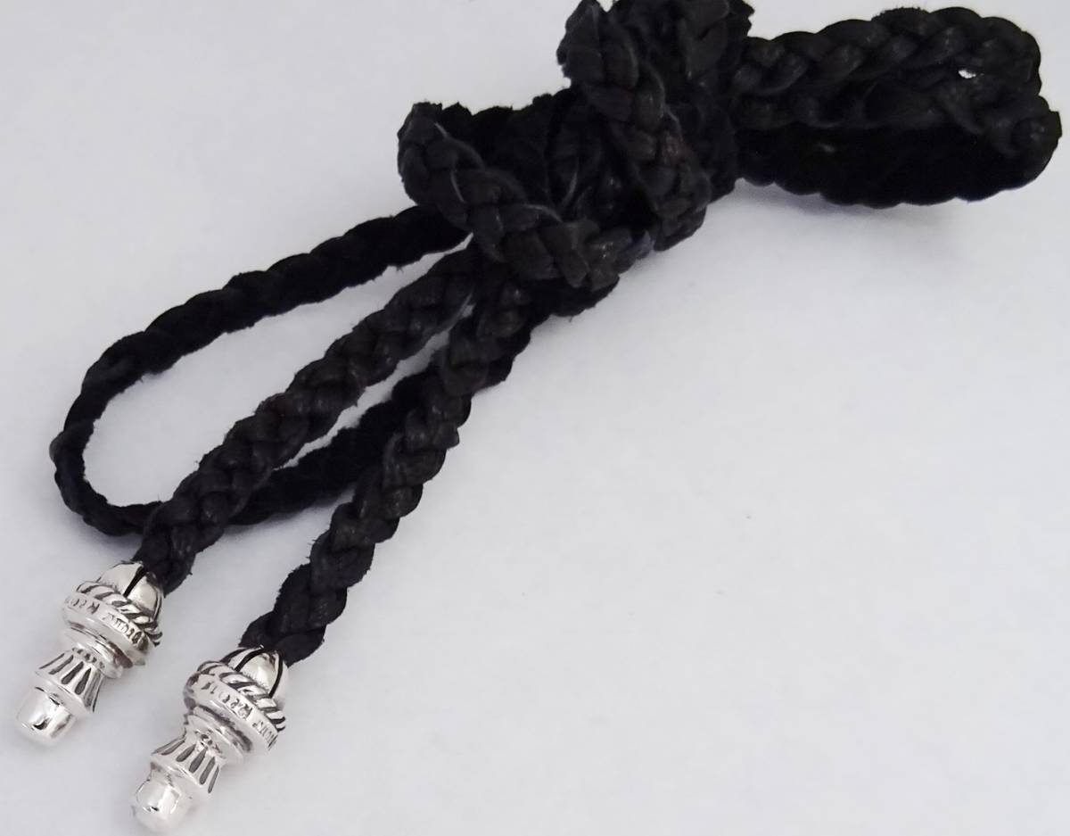 > ★◆☆ バレルチップ 三つ編革ひも ◆ シルバー925 バレルボロチップ 黒革紐 3つ編レザーコード 新品 未使用 バレル チップ 三つ編み革紐