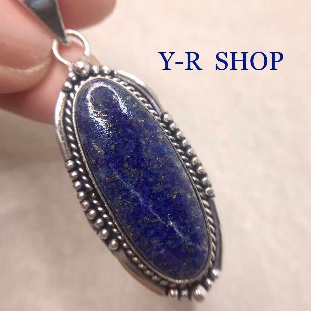 - 天然石★ラピスラズリのアンティーク調ペンダントトップ★レディースメンズネックレスシルバーエスニックアジアン雑貨新品宝石Y-R SHOP