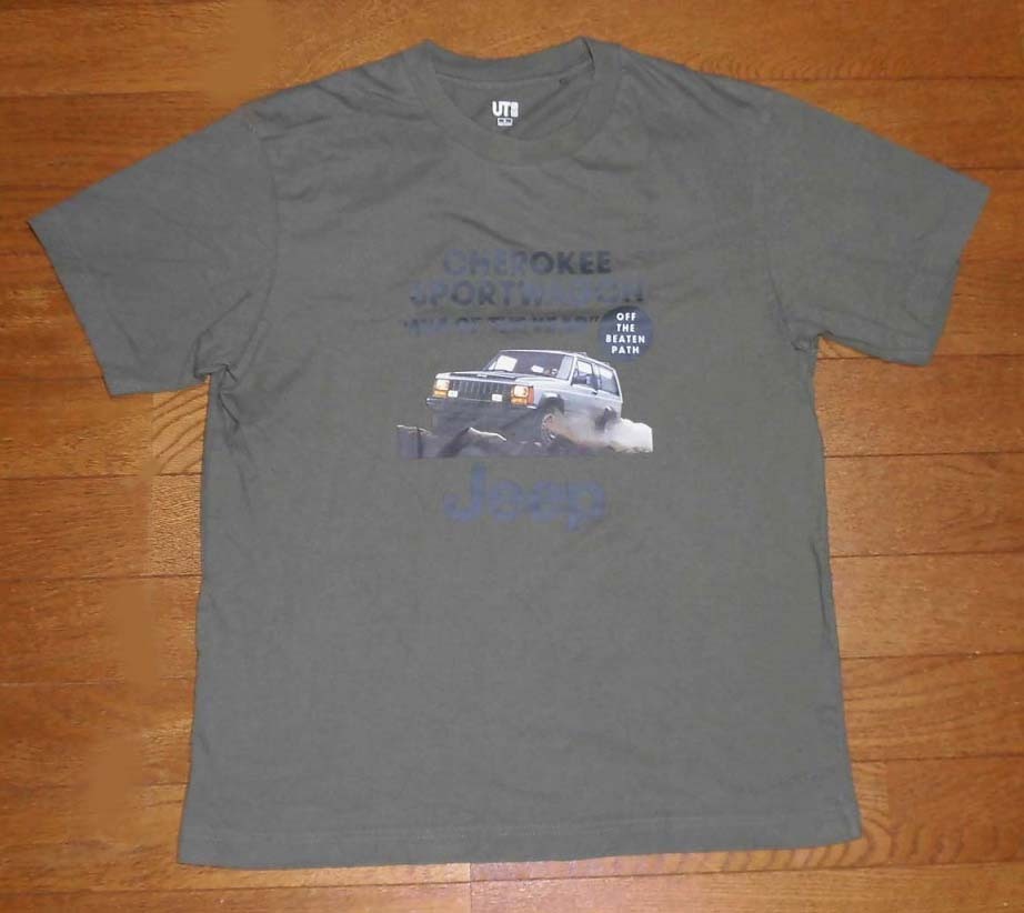 - Jeep CHEROKEE SPORTWAGON ジープ チェロキー スポーツワゴン ユニクロ コラボ UT Tシャツ 半袖 コットン OLV S 使用少 美品/4WD 4X4