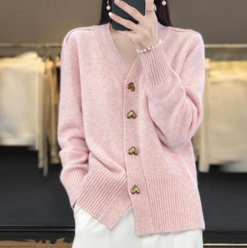 - 秋新品*カーディガン レディース ニット セーター アウター ゆったり 上品 通勤 おしゃれ 羽織り 長袖 セーター キレイめ*ピンク