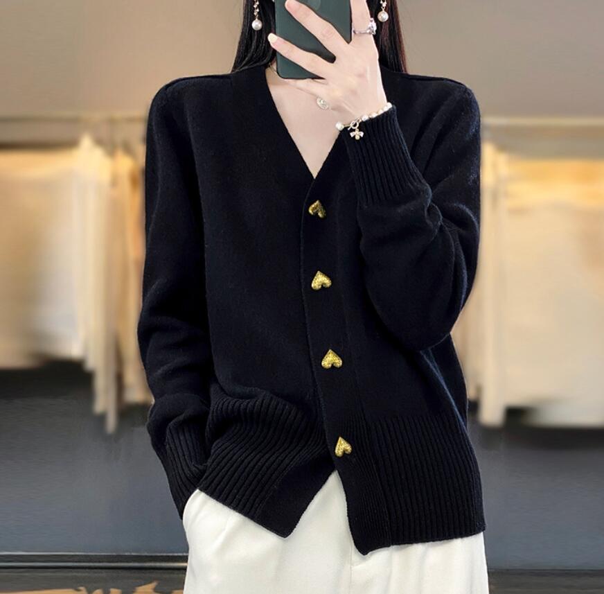 - 秋新品*カーディガン レディース ニット セーター アウター ゆったり 上品 通勤 おしゃれ 羽織り 長袖 セーター キレイめ*ブラック