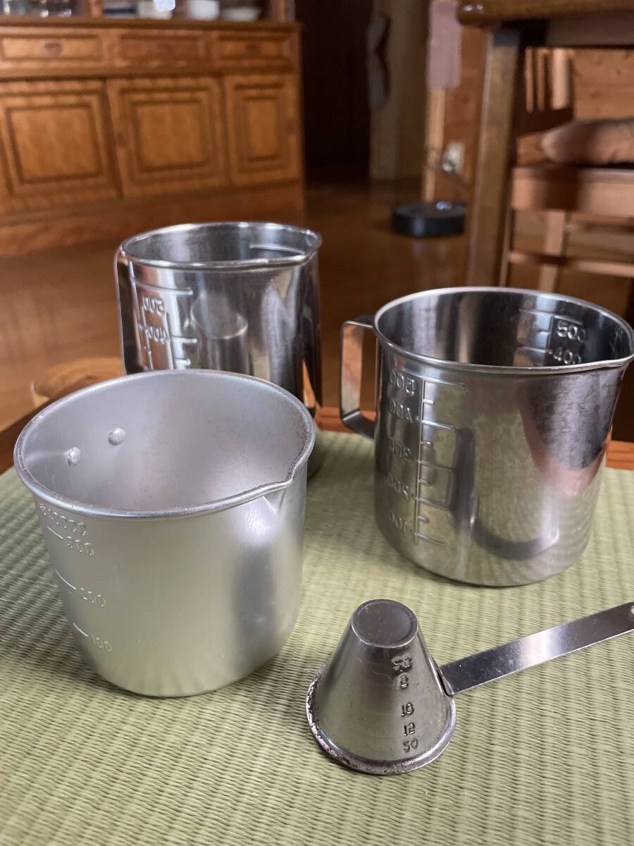 - used計量器カップ4タイプセットステンレス&アルミゆうパック着払い