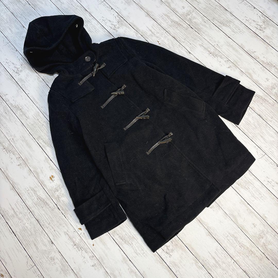 - ニコル フード付きダッフルコート 黒 派手裏地 アウター ロング