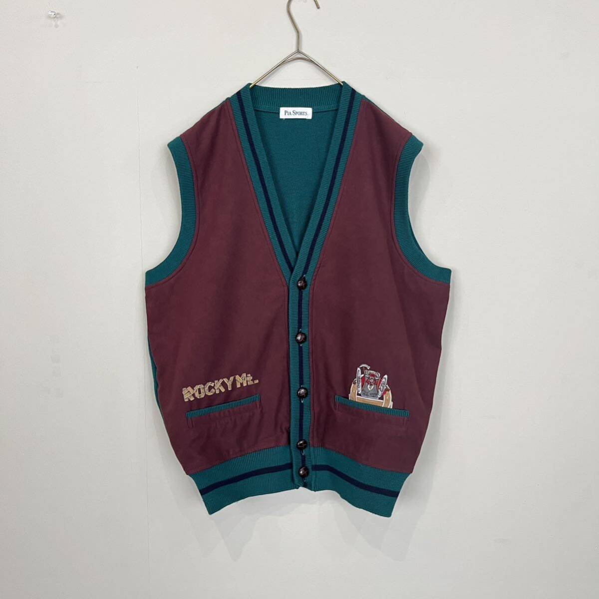 - PIA SPORTS ピアスポーツ ベスト ニットベスト ゴルフ メンズ エンジ グリーン ネイビー ROCKY MT. ロッキー 3 キャラクター