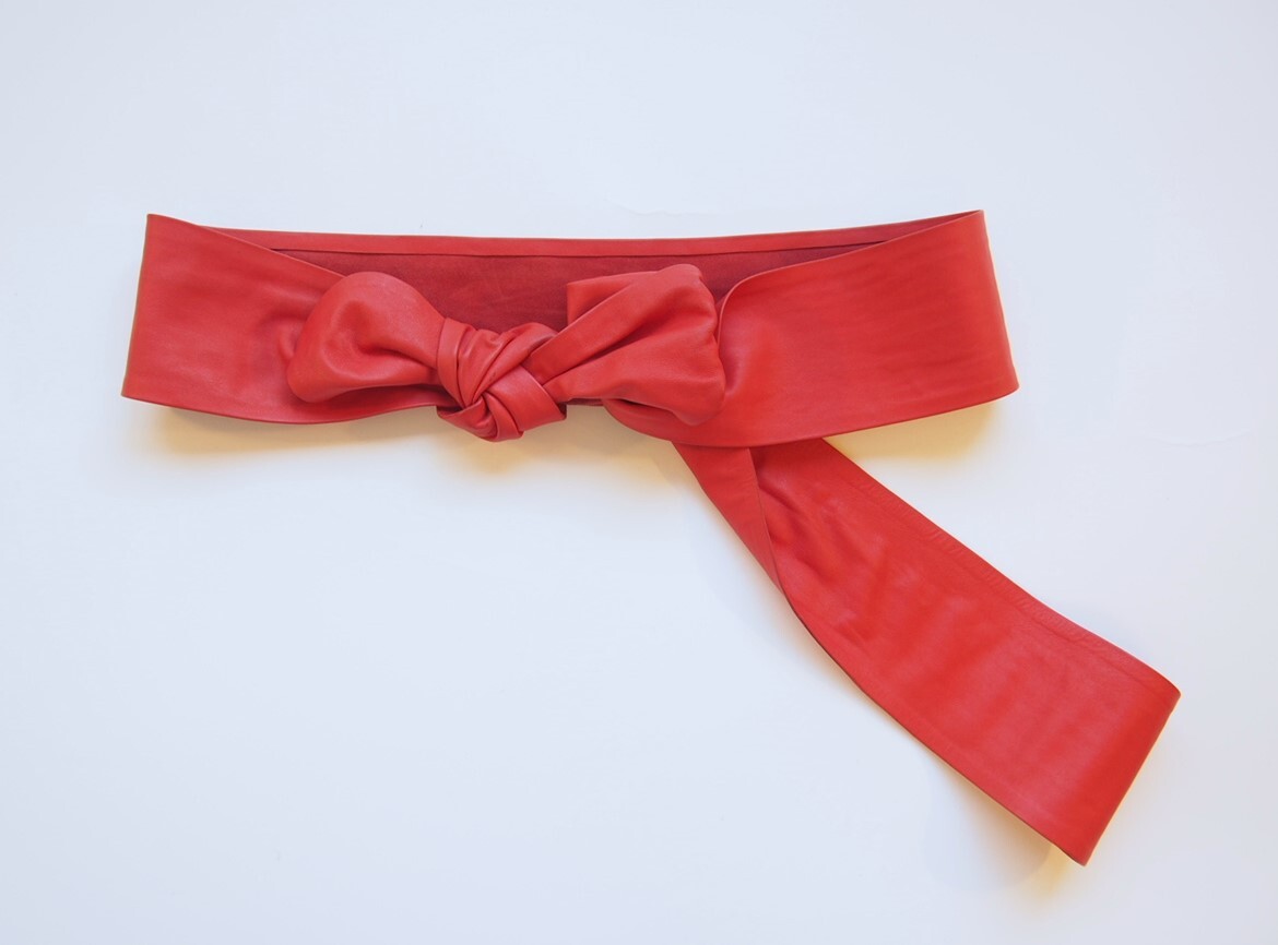 - 定価4万円★イタリア製★かなりソフト★マリン軽く自由に結べるフリーサイズレザーベルト太幅サッシュベルトbocbonde赤リボン本革