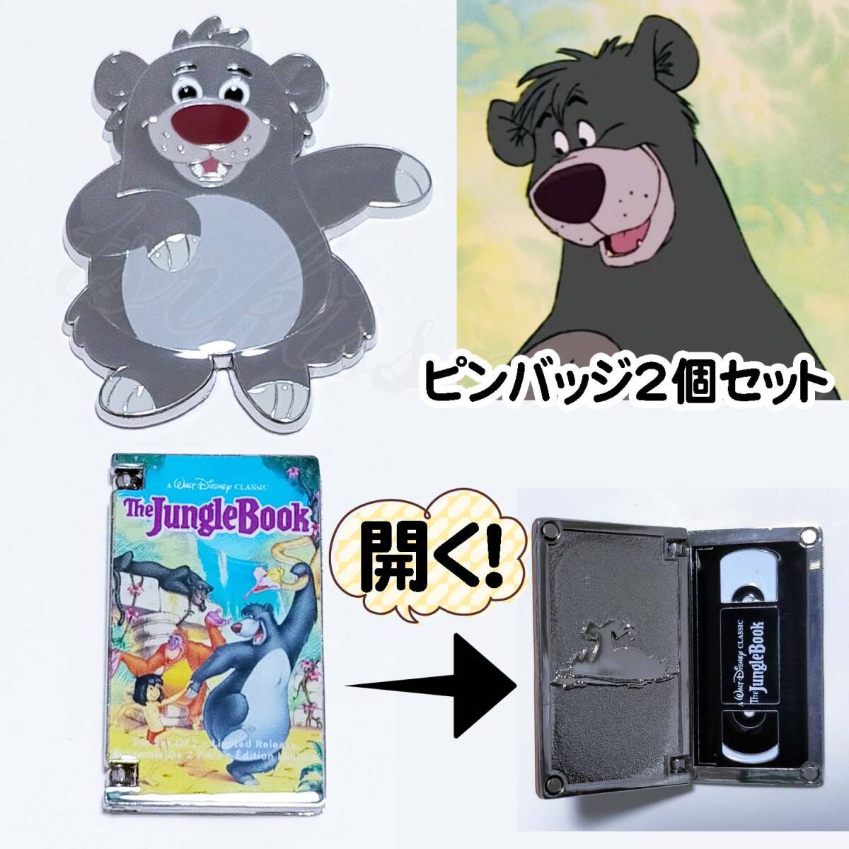 - ジャングルブック バルー VHSデザインパッケージ ピンバッジ 2個セット ディズニーストア