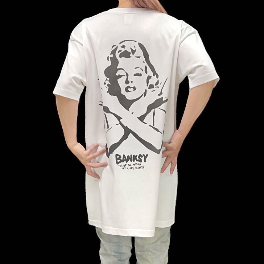 > 新品 ビッグ バックプリント & 胸ワンポイント BANKSY バンクシー マリリンモンロー コルナ サイン 大きい Tシャツ オーバーサイズ 3XL(4L)