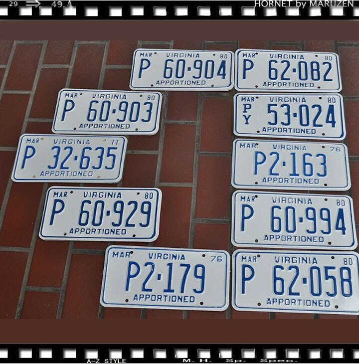 > 送料込み 前後セット中古実物本物 アメ車ライセンスプレート VIRGINIA APPORTIONED WH/BUナンバー1台分2枚cartags