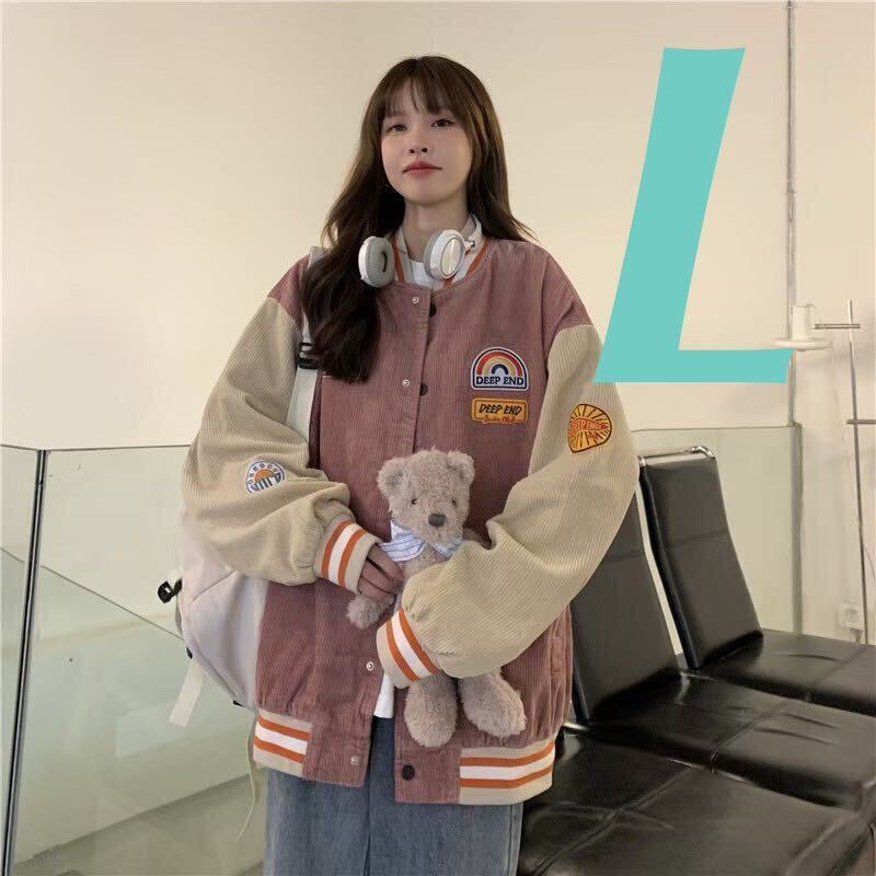 > ブルゾン ジャケット アウター コーデュロイ スタジャン トレンド ストリート ビッグシルエット レディース ピンク L
