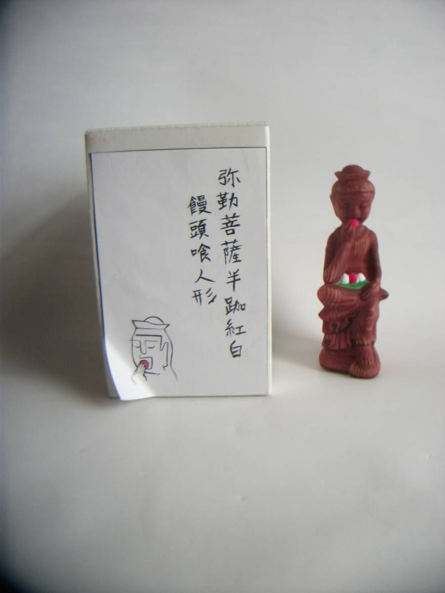 - ミロクムカシガング 「弥勒菩薩半跏 紅白饅頭喰人形」(陶器製) 未使用 専用箱付き
