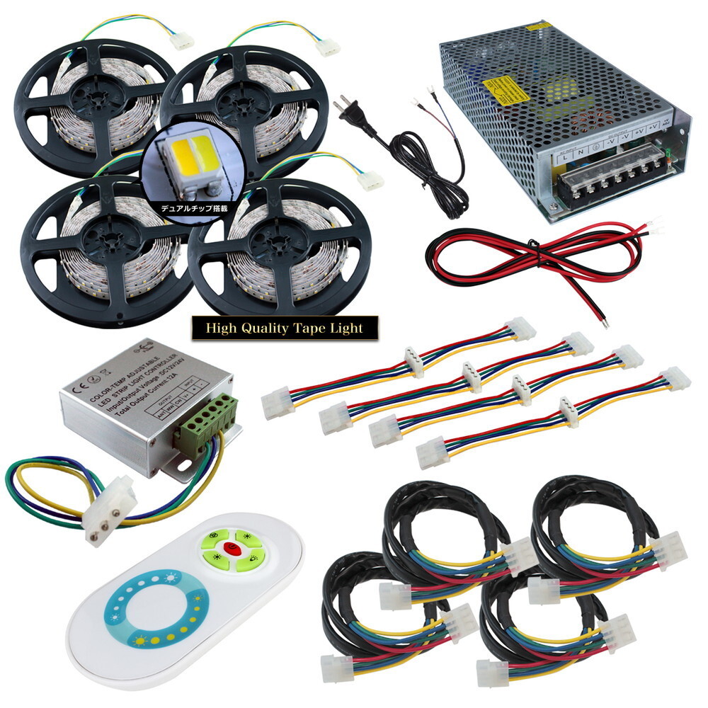 - LEDテープライト 2色 調光器セット 電源付き RFリモコン付属 非防水 インテリア 照明 白色 電球色 100cm 4本