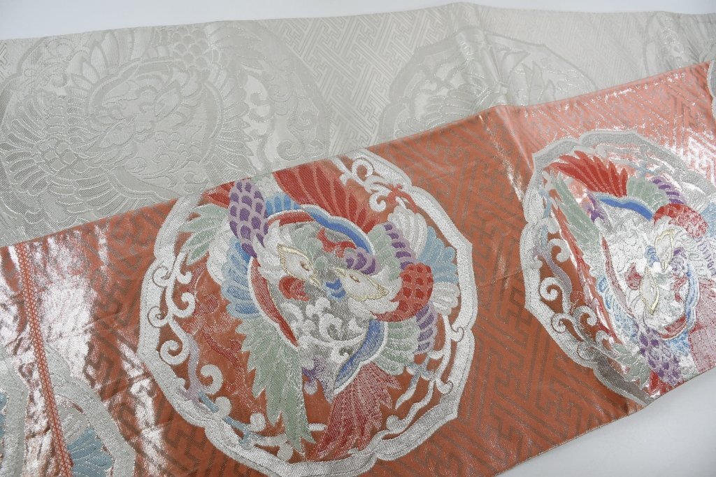 - 袋帯 向い鳥 卍繋ぎ 唐花 正絹 金銀糸 帯丈438cm ★着物屋 ne-12079 桜庭呉服店