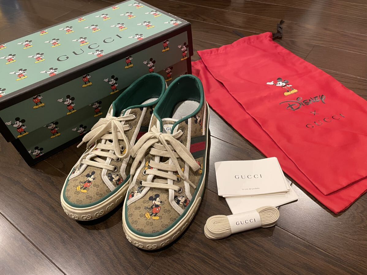 - 入手困難 廃盤 GUCCI メンズ スニーカー ディズニーコラボ ミッキーマウス TENNIS 1997 ウェブストライプ シェリーライン 7 26.5