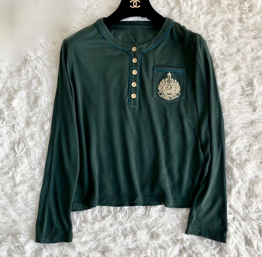 - ●MARINE BLUE /マリーンブルー/深緑金釦金刺繍ワッペン/カシミア混カットソー長袖/ゴルフ/サイズL