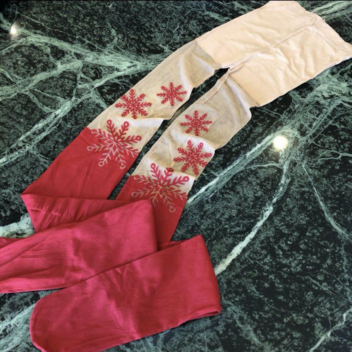 - 【新品】雪の結晶柄タイツ★ニーハイ風タイツ タトゥータイツ 赤 コスプレ イベント クリスマス 冬 ニーハイタイツ ストッキング