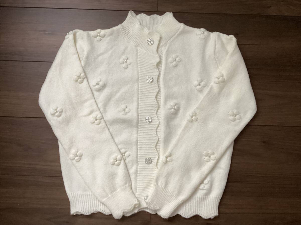 - ★ タグ無し新品未使用 パールの立体お花模様 ニット カーディガン Fサイズ ★