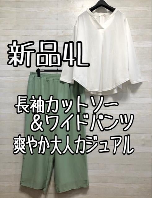 - 新品☆4L♪さわやか大人コーデ♪白系カットソー&グリーン系きれいめワイド☆f381
