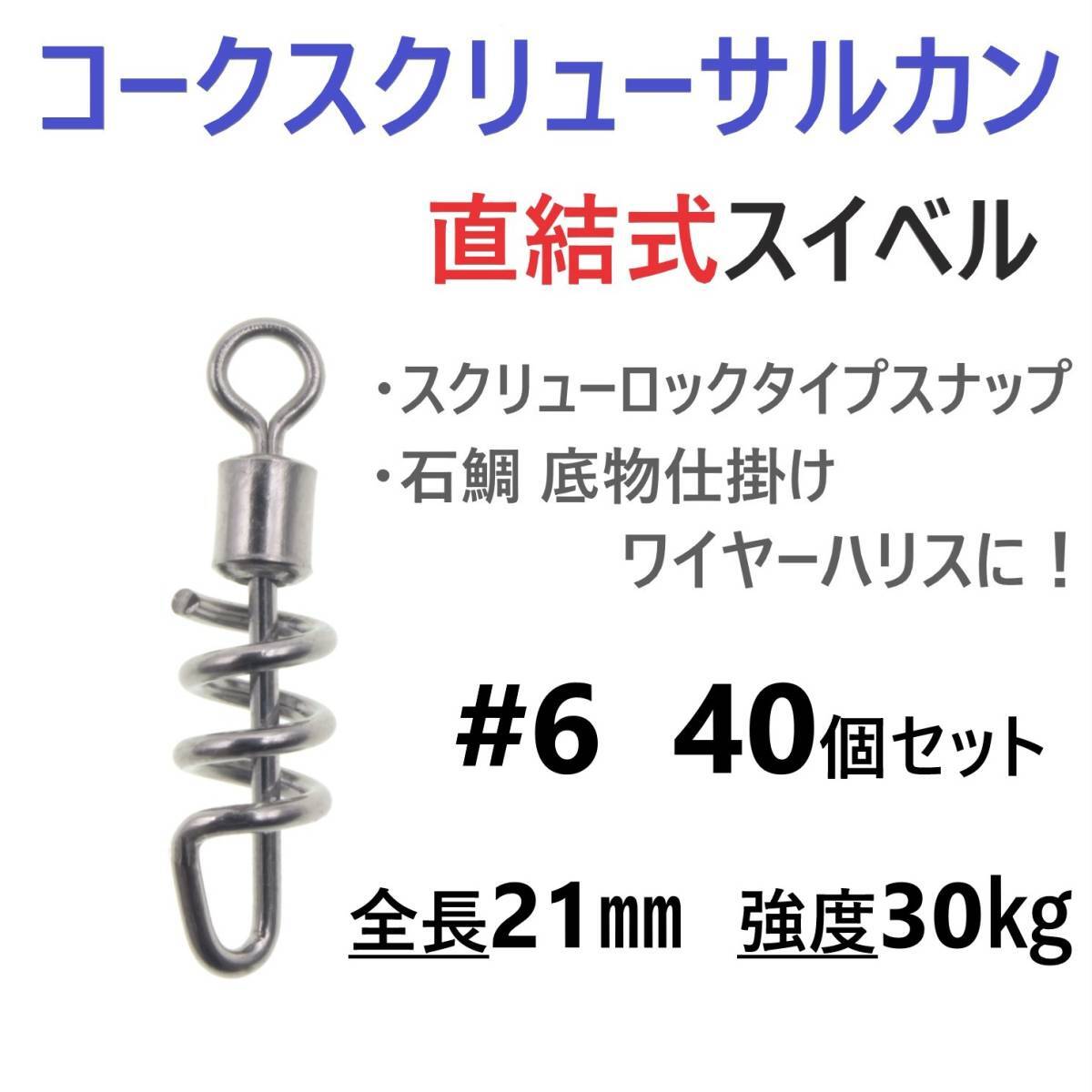 > 【送料150円】コークスクリューサルカン #6 40個セット 直結式 スイベル スクリューロック スナップ ラセンサルカン 石鯛 底物仕掛けに!