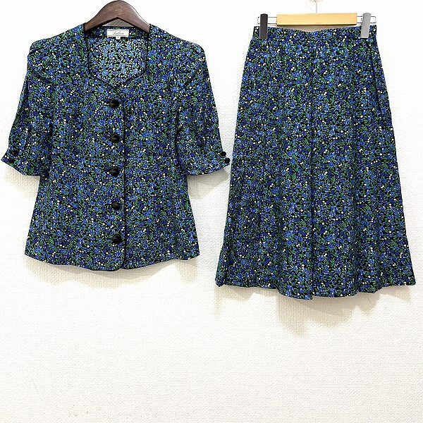- #snc レリアン Leilian セットアップ 7 黒 青 緑 ツーピース 花柄 半袖 小さいサイズ レディース [906531]