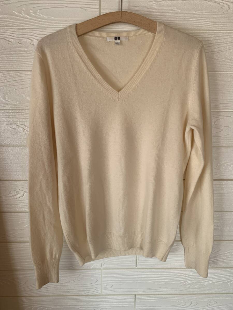 > UNIQLO/ユニクロ★カシミヤ Vネック ニット 長袖 トップ ホワイト レディースL