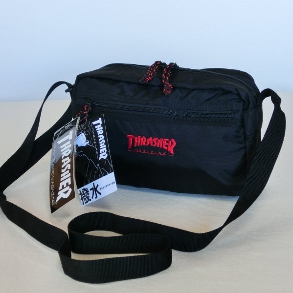 - 大幅値下げ! THR-141 THRASHER スラッシャー 8217mシ 刺繍赤 ショルダーポーチ 2,900円+税 撥水 ブラック 黒 斜め掛け 小物入れ