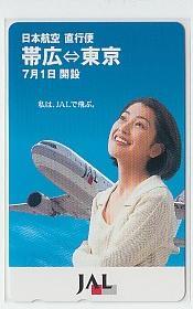 > 9-m322 鶴田真由 JAL 帯広東京開設 テレカ