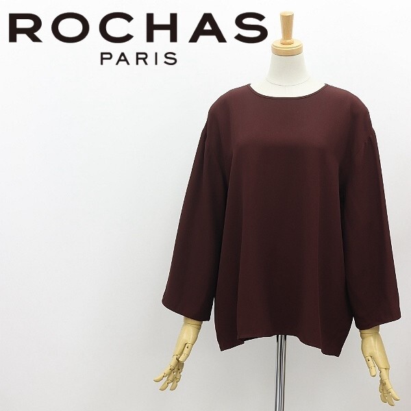 > 美品◆ROCHAS ロシャス レリアン ドロップショルダー ブラウス ブラウン 40