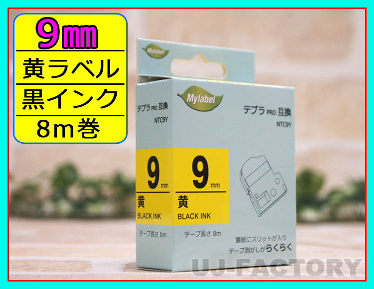 - 【即納!】★テプラPRO用互換テープカートリッジ/ラベル★9mm幅×8m・黄色テープ/黒文字 NTC9Y(SC9Y対応)