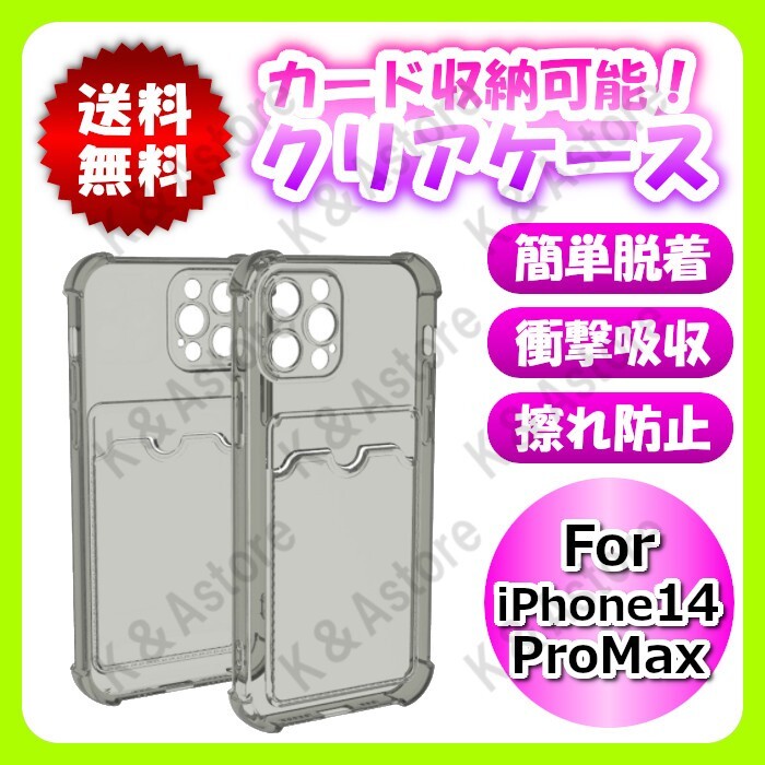 > iPhone14promax スマホ ソフトケース カバー ブラッククリア 透明 カード収納 カード入れ ポケット付き
