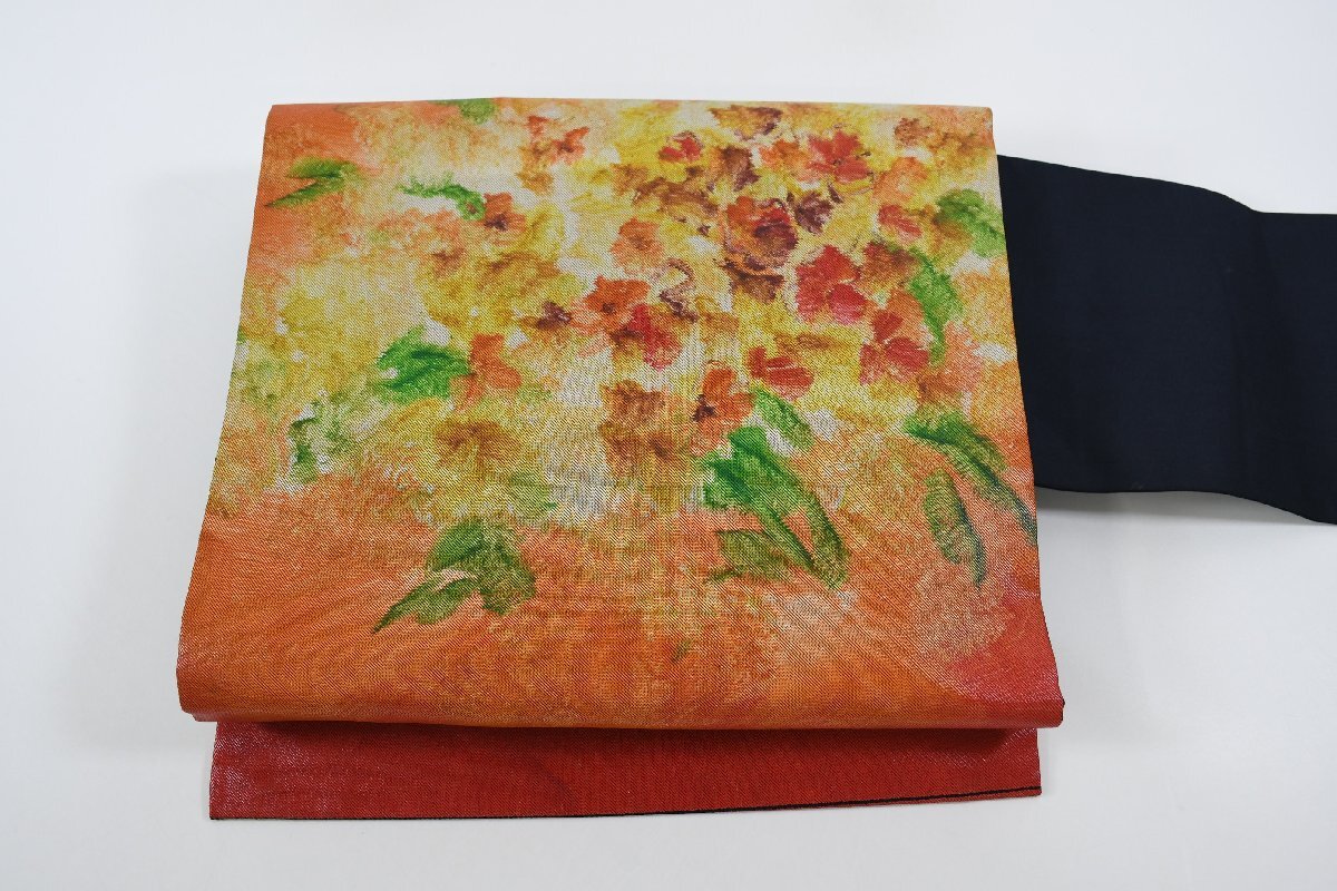 - 名古屋帯 暈し 花 秋草文 帯丈340cm ★着物屋 ne-12272 桜庭呉服店