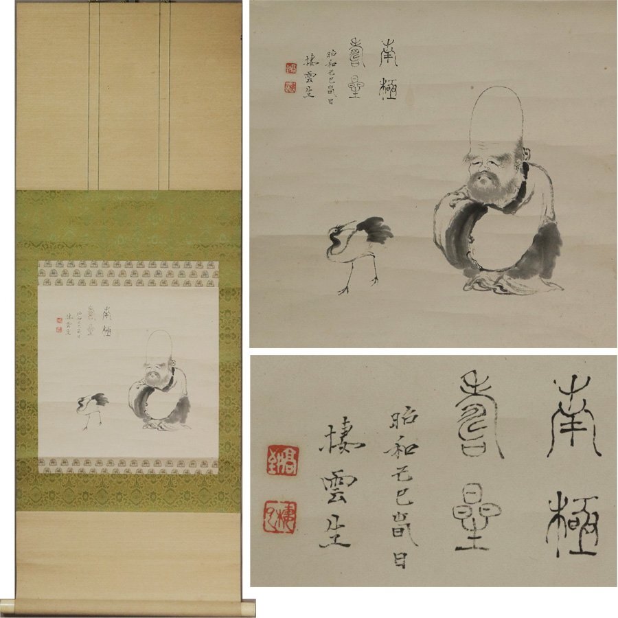 - 《源》【即決・送料無料】(昭和4年筆)島根県 木村棲雲 自筆「南極寿星(寿老人)図」/箱付
