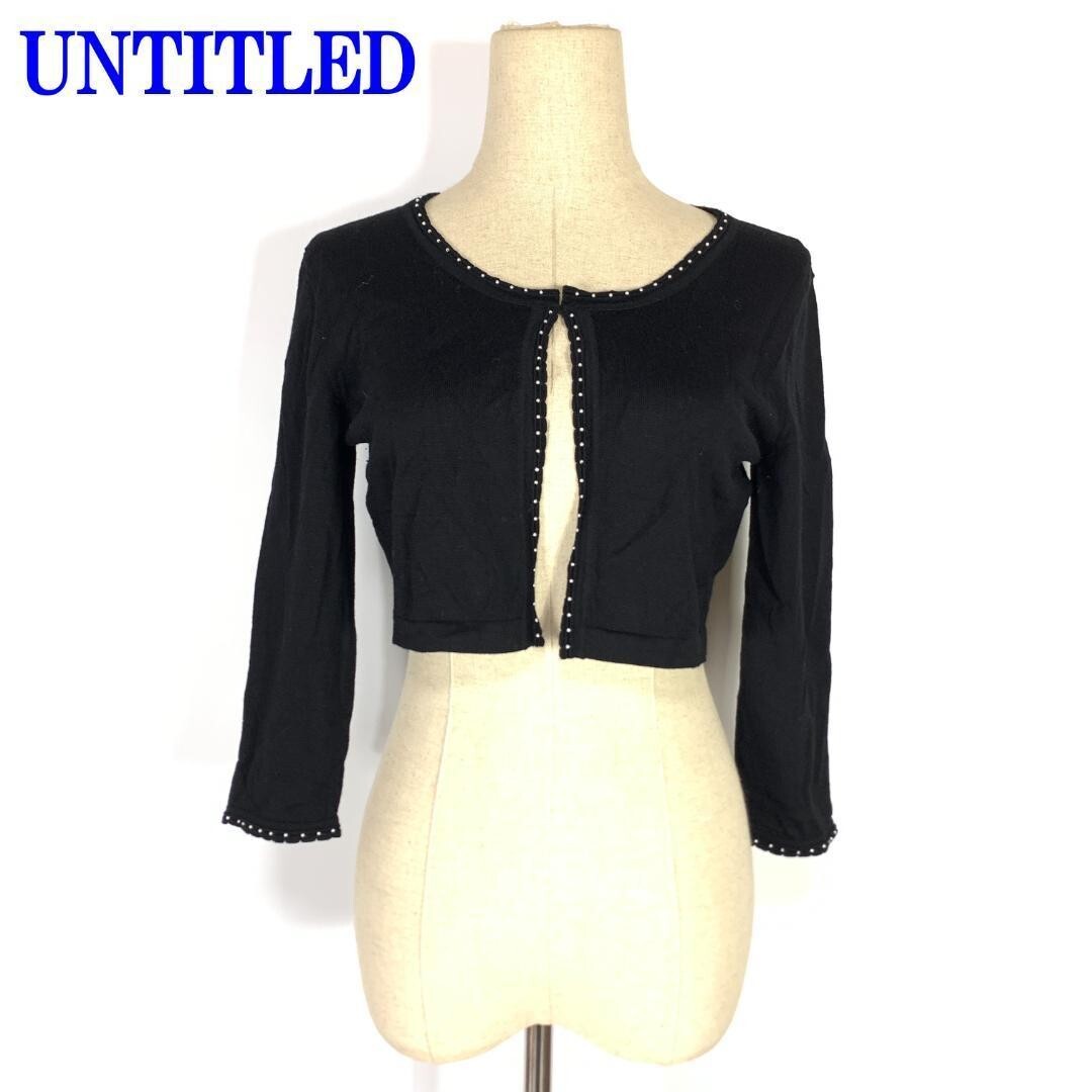 > UNTITLED アンタイトル 長袖ショートカーディガン ブラックビーズ装飾 フック型留め具 ウール100%2 C1392