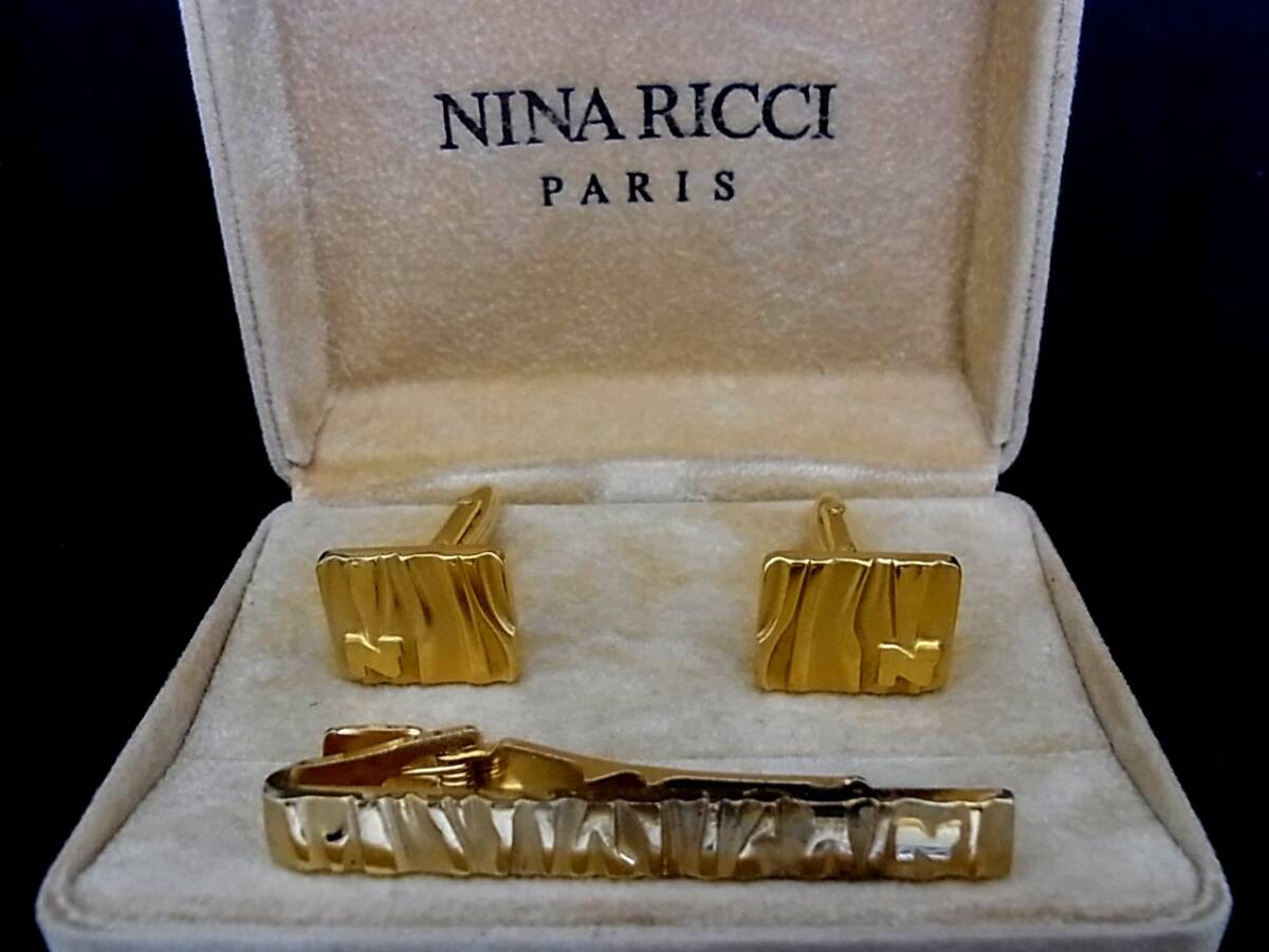 - ◎№4545◎■⑤■ニナリッチ【NINA RICCI】【ゴールド】■カフス&ネクタイピン セット♪