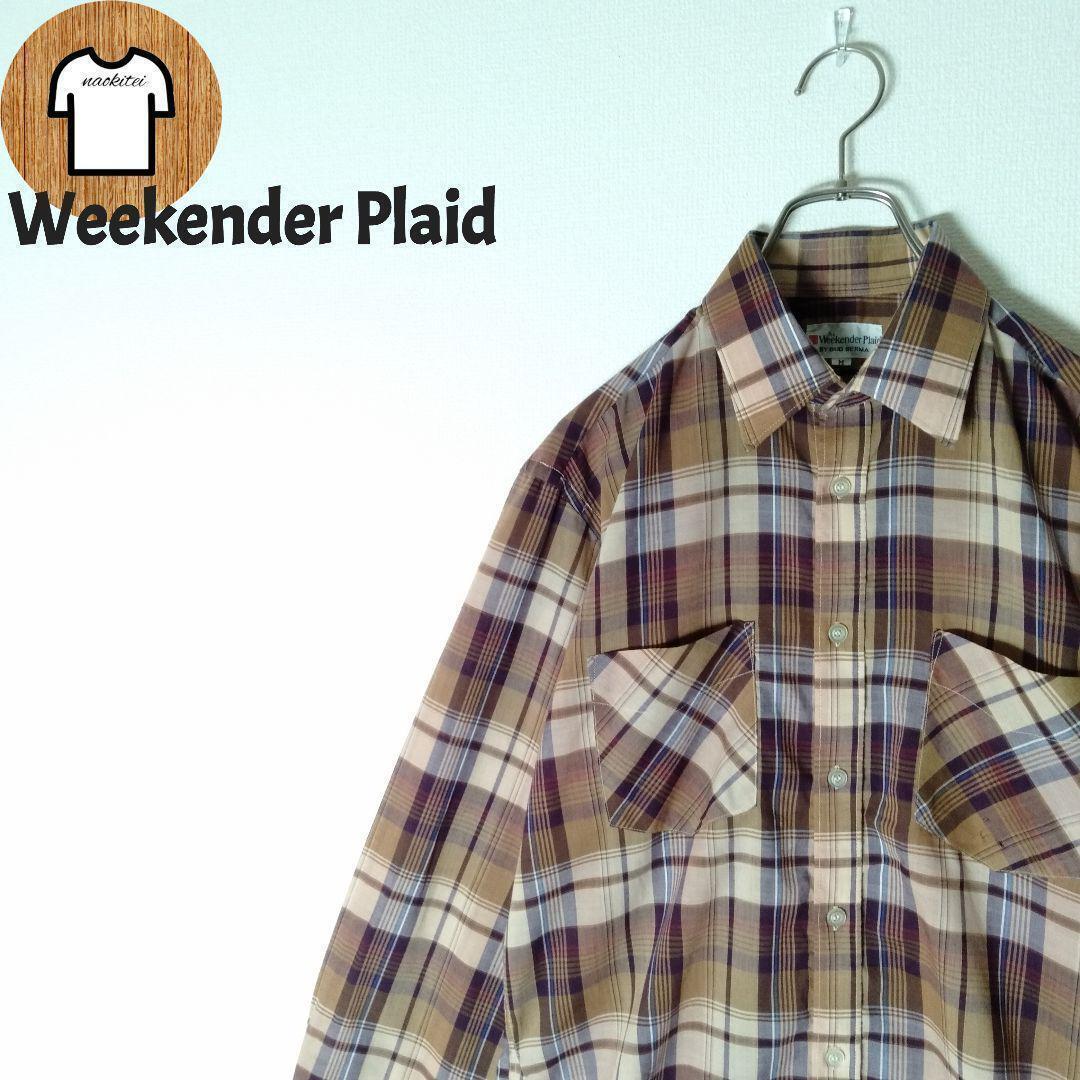 > Weekender Plaid チェックシャツ M ユーゴスラビア製 海外古着 A682 長袖 ロングスリーブ