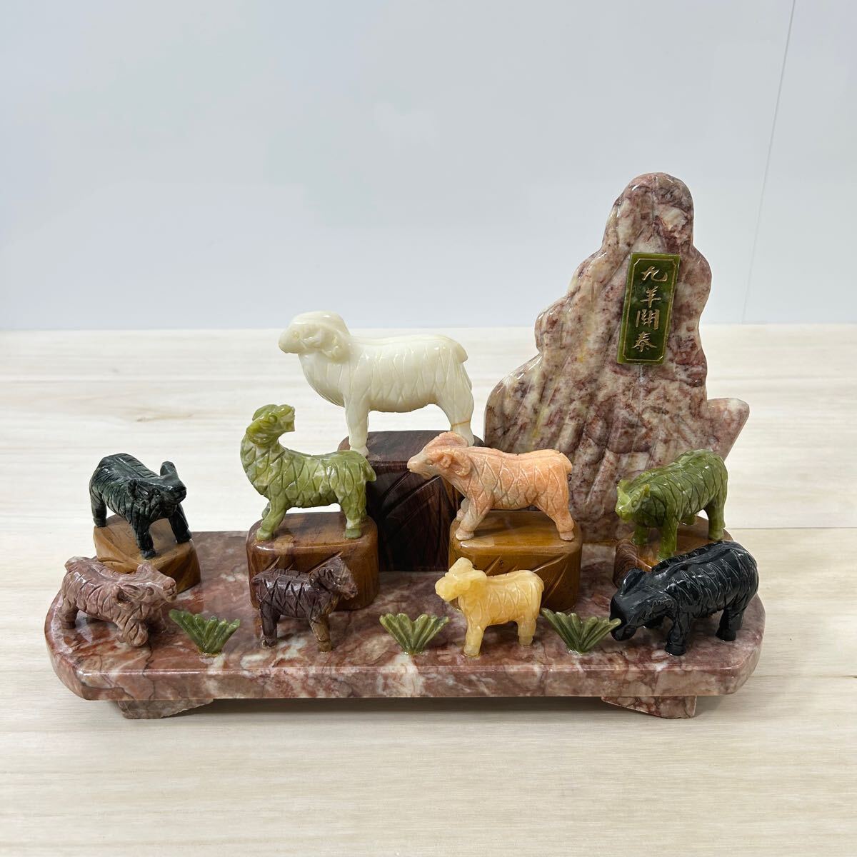- 【希少品】中国美術 中国工芸品 極細工『九羊開泰』石彫刻 大理石彫刻 縁起物 置物 オブジェ