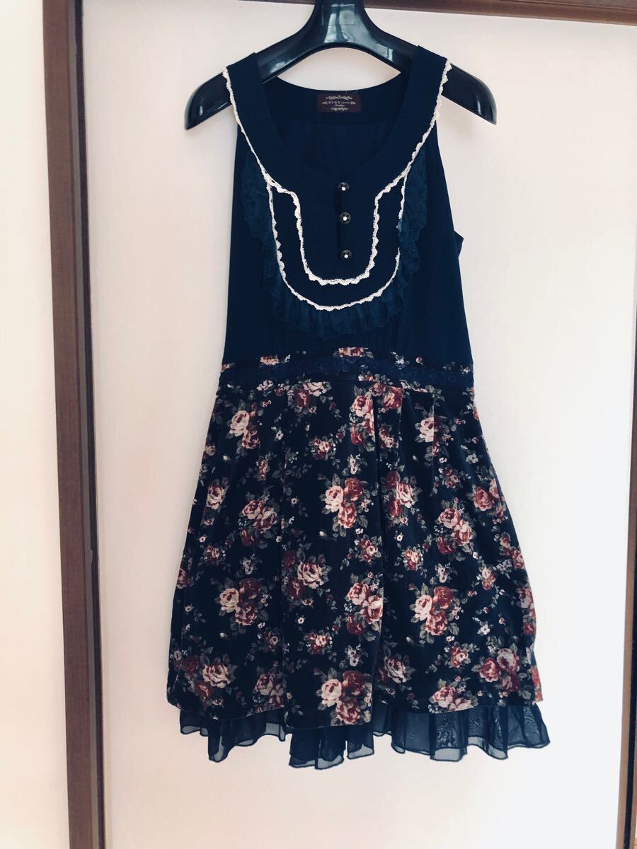 > axes femme ネイビー フラワープリントスカート ノースリーブチュニック ひざ丈 花柄