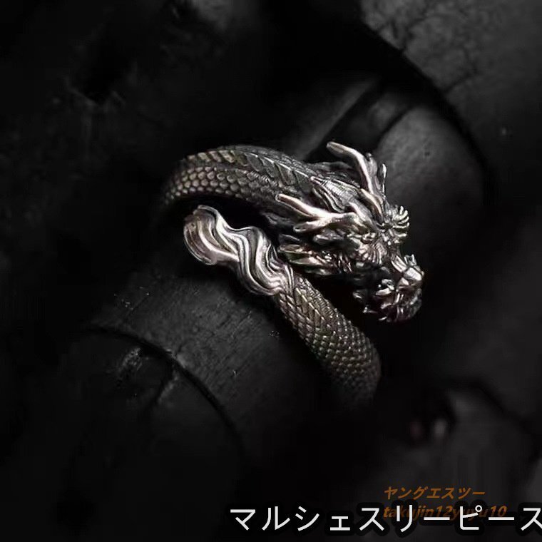 - 新品 シルバー925 リング 指輪 龍 職人手作り アクセサリー レトロ メンズ レディース フリーサイズ 調整可能