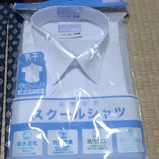 - 【新品】半袖スクールワイシャツ 形態安定 170A 襟回り38cm