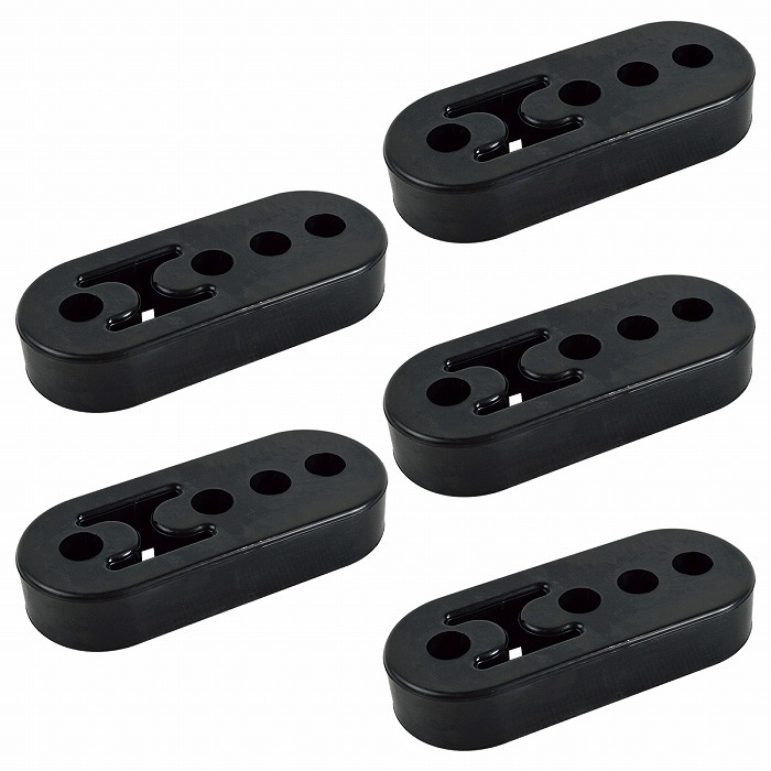 - 『5個』強化 三段調整式 マフラー リング ハンガー 吊りゴム 4ホール 4穴 穴径12mm 厚み21mm 汎用 マウント 干渉 黒/ブラック