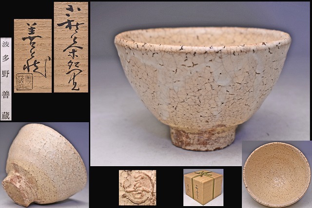 > 波多野善蔵 ★ 萩 茶碗 ★ 共箱 栞 ★ 指月窯 ★ 師:吉賀大眉 ★ 井戸風茶碗 ★ 萩焼 ★ 山口県 ★ 茶道具 ★ 大ぶりで存在感のある逸品