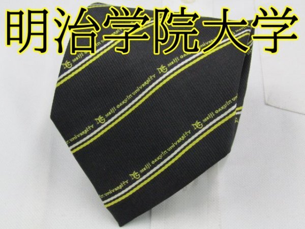 - 【ご当地 明治学院大学】AB 470 明治学院大学 ネクタイ 黒系 ストライプ ワンポイント ブランドロゴ ジャガード