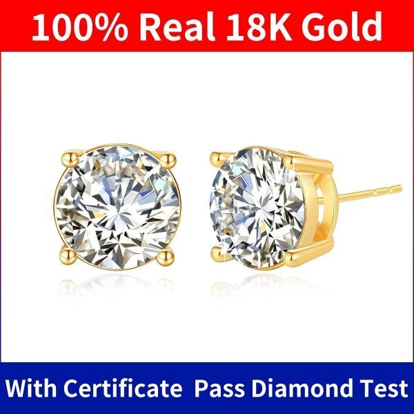 1ゴールド証明書付き、【18Kゴールドピアス】、モアッサナイト、1.0ct