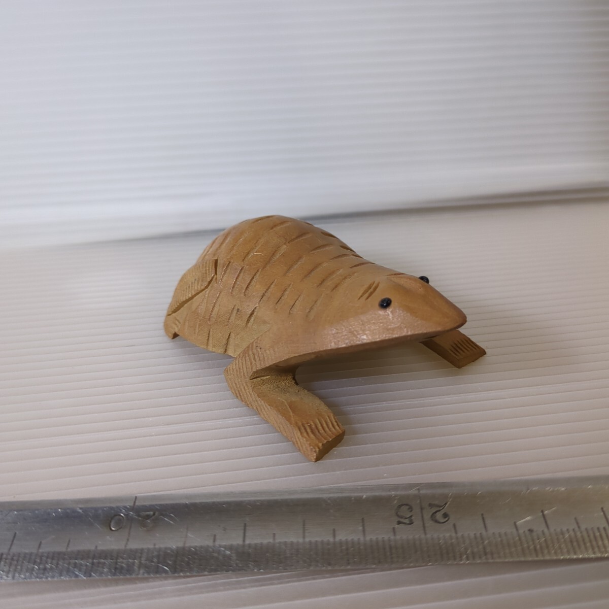 - カエル 蛙 置物 木製 全長約8㎝ 未チェック 詳細不明 ジャンク扱い 民芸品