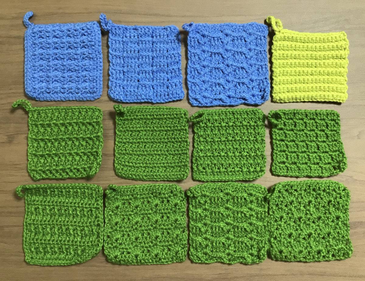 > 【編ア-35】アクリルたわし12枚(角型 青・緑) 食器洗い 洗剤不要で肌にやさしいエコたわし シンク磨き お風呂掃除 鏡磨き ガラス掃除等にも