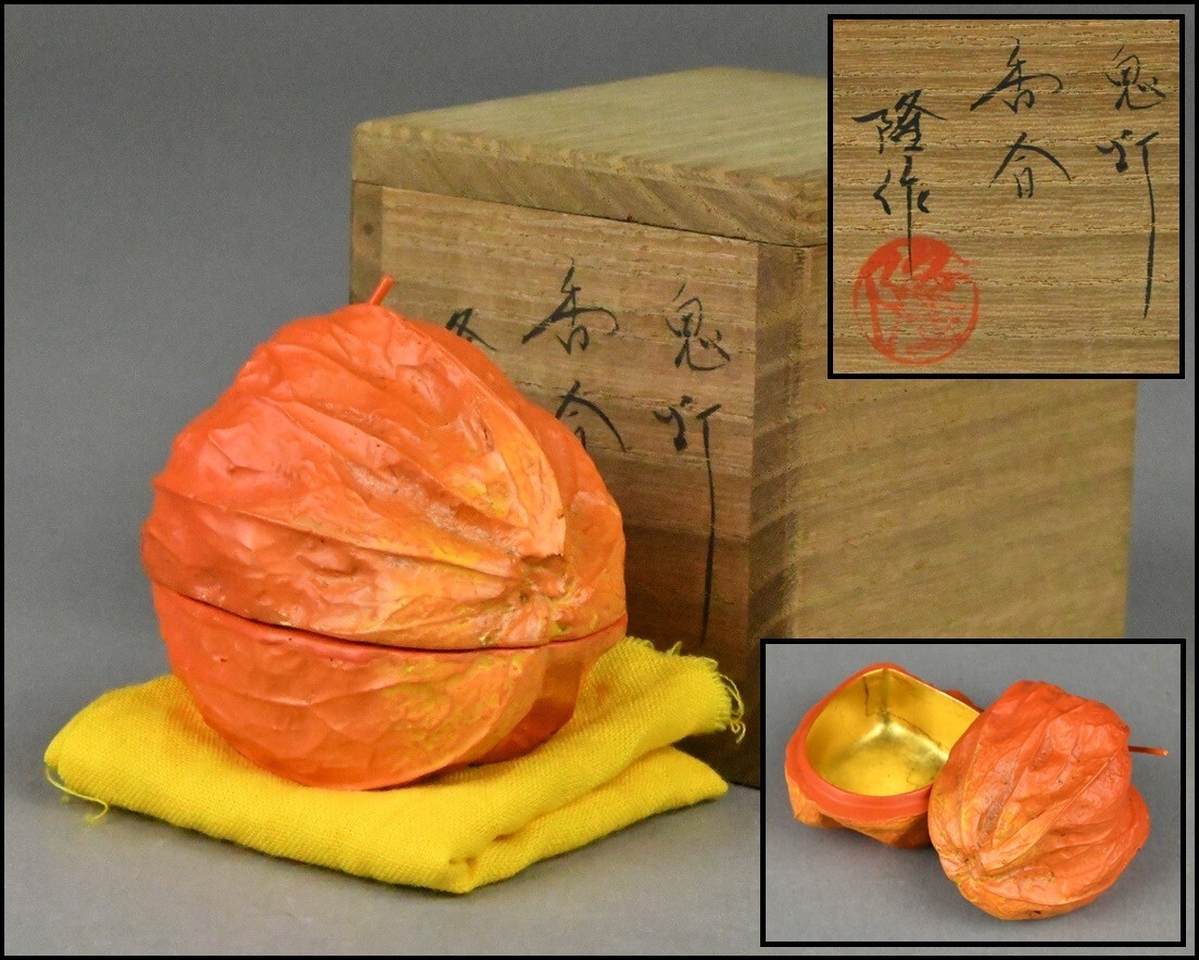 - 【岩倉隆斎】鬼灯 香合 布付 共箱 茶道具 DR24-1008