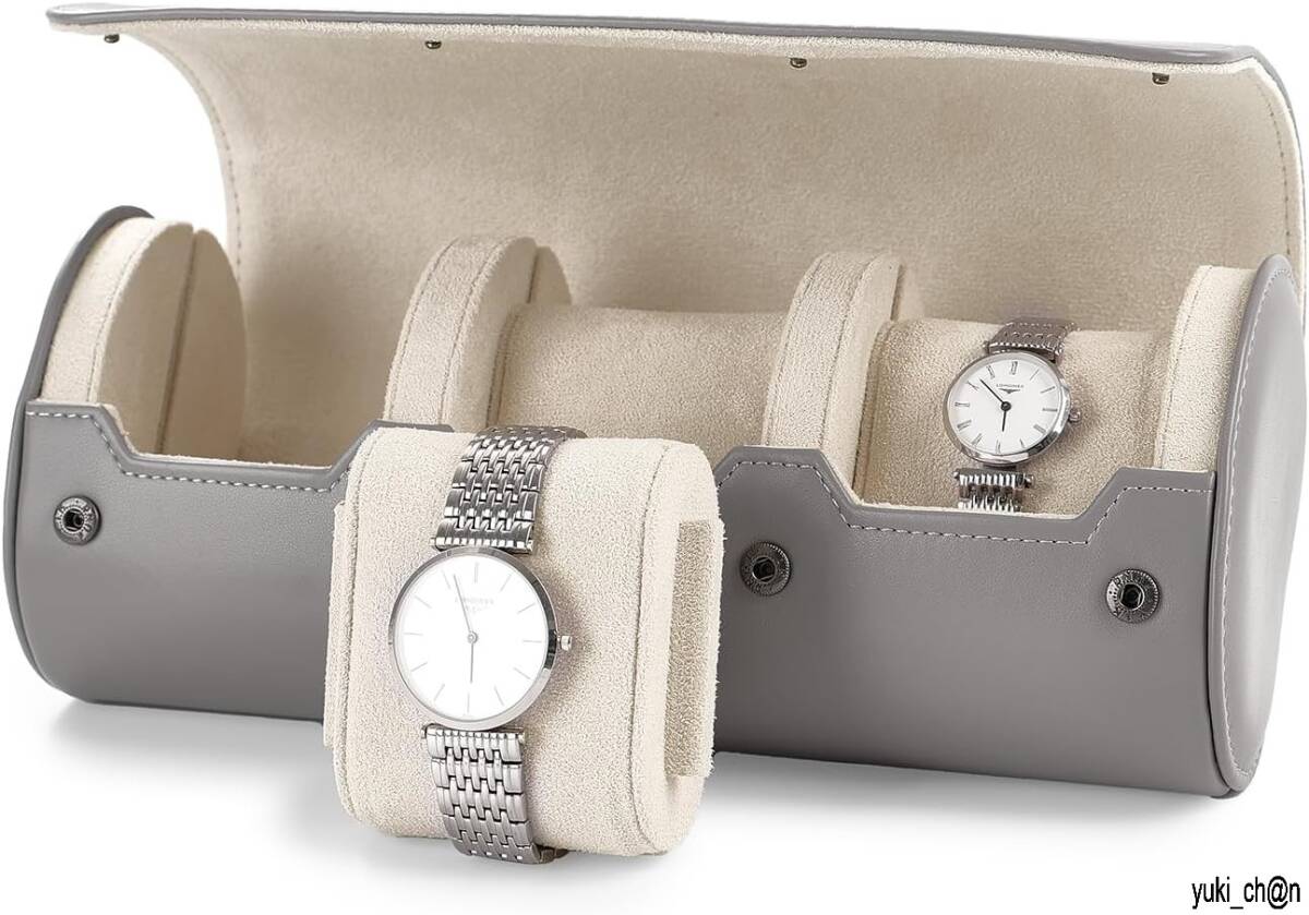 - 腕時計ケース 時計ケース グレー PUレザー 3本用 ミニ 持ち運び 高級 おしゃれ 旅行 出張 ギフト 旅
