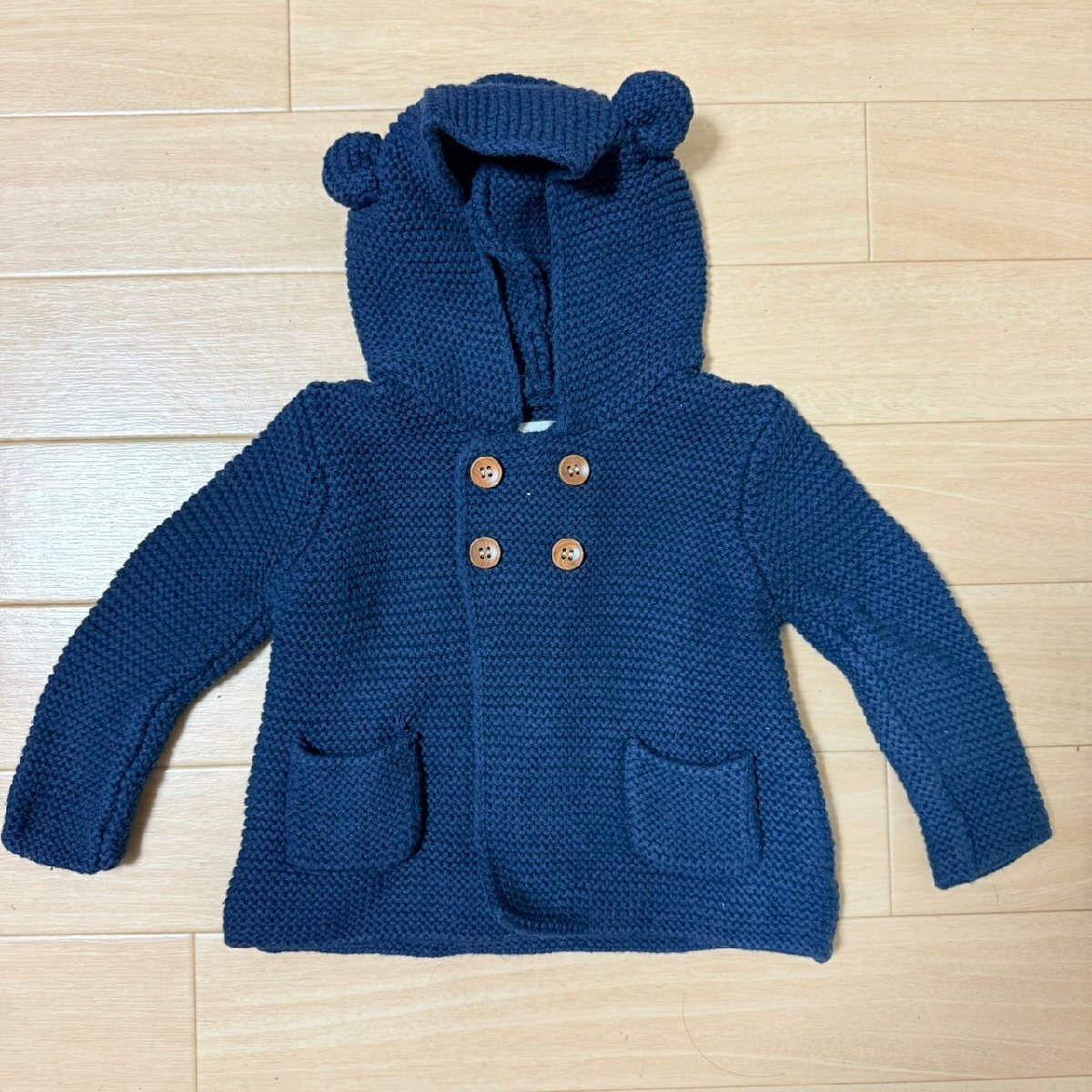 > ZARA Mini ザラ ベビー ニット パーカー ネイビー 鍵針編み くま耳フード 6-9ヶ月 74cm