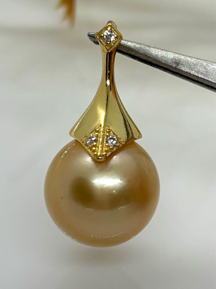 - 白蝶パール 南洋白蝶真珠 大粒ゴールデンパール ペンダント新品(N376)